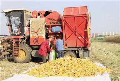 9月25日,宿州市埇桥区西二铺镇沈家村两台大型玉米联合收割机正在一蒋姓农民地里收割玉米。埇桥区是全国产粮大区,目前,230多万亩玉米、大豆等农作物陆续成熟。埇桥区精心组织,科学布局,全力以赴掀起抢收抢种热潮,全区10万台套农机、30多万农民奋战在“三秋一线”。