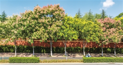 进入秋季,合肥高新区玉兰大道上,一排排栾树的花与果摇曳生姿,金色的花与火红的果交相辉映,给国庆假期平添了几分节日氛围。