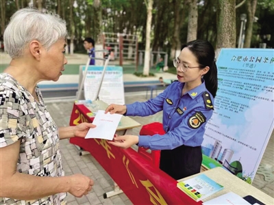 为宣传普及《合肥市公园条例》,提高市民知晓率,近日,合肥高新区城管局组织党员志愿者在蜀峰湾体育公园开展普法宣传活动。