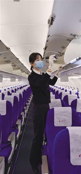 作为女性安全员,孙洋说:“我为我是一名航空安全员而骄傲,女安全员也可以很好地保卫飞行安全。”