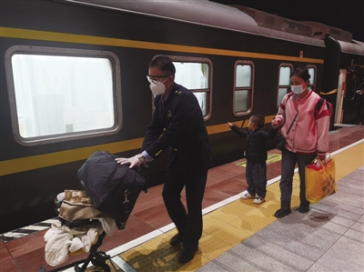 10月8日,亳州站开往宁波的K8513次列车始发,站台上走来一旅客,一手抱着宝宝一手推着婴儿车,还背着行李。列车员李周亚看到后连忙迎上前去优先帮她补了卧铺票并推着婴儿车把行李送至铺位安顿好。该女士高兴地说,你们列车上的服务真好,给你们点赞。 本记