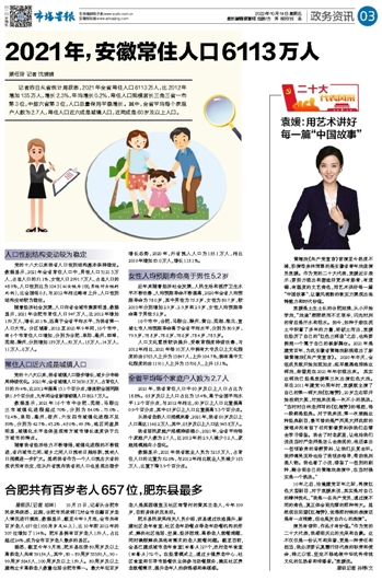 2021年,安徽常住人口6113万人