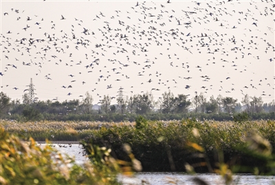 近期,大批越冬候鸟云集天津七里海湿地自然保护区,白琵鹭、苍鹭、灰鹤等候鸟在芦苇荡上舞出翩跹身影,绘就秋日湿地画卷。图为10月18日在天津市宁河区七里海湿地自然保护区拍摄的候鸟。 新华社记者 孙凡越/摄