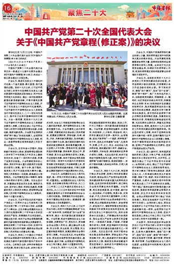 中国共产党第二十次全国代表大会 关于《中国共产党章程(修正案)》的决议