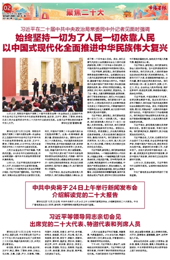 中共中央将于24日上午举行新闻发布会 介绍解读党的二十大报告