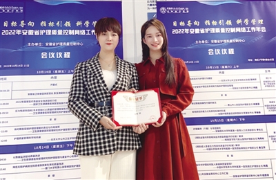 10月13号,安徽省护理质量控制中心护理年会在合肥召开。华师附院(芜湖二院)烧伤整复科、急诊外科一病区副护士长陈芳和普外胃肠二病区张双护士作为项目汇报人,经过精心准备在比赛中脱颖而出,荣获省级二等奖,充分体现了院护理质量管理的成效。