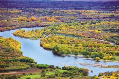 广袤无垠的呼伦贝尔大草原、源远流长的额尔古纳河、绵延的大兴安岭原始森林共同孕育出了156.31万公顷的高纬度、低海拔、原生木本湿地——内蒙古额尔古纳湿地。湿地中河流湿地、滩涂湿地、灌木、塔头相伴而生,蜿蜒清澈的河流从湿地中贯穿而过,湿地的景色随季节变化气象万千,展示着无限生机。新华社发 韩欣辰/摄