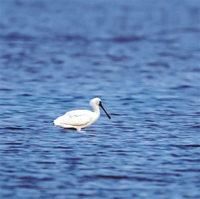 10月30日,资深鸟友“合肥老夏”在环巢湖湿地三河荷花园及湖边,惊喜发现全球濒危物种、安徽罕见的黑脸琵鹭,用镜头拍下其优美身姿。