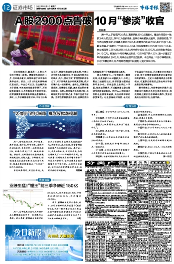 A股2900点告破 10月“惨淡”收官