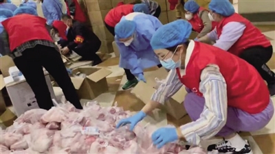 到了晚上,樊洁和志愿者们一起整理和打包生活物资。为保障群众生活,樊洁仔细地将水果、蔬菜、肉分门别类,然后进行平均打包,确保每户都能收到品种齐全的生活物资。在封控期间,个别住户的心理出现了小问题,樊洁和志愿者们及时地对他们进行劝解和疏导,让他们相信党、相信政府,解封的日子一定不遥远。到了深夜,回到家的樊洁看到熟睡的孩子,露出了满足的笑容。