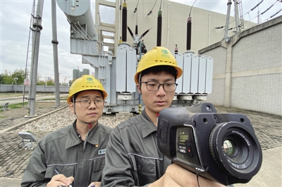 从上午开始,张鹏飞和班长张福建已经紧张地忙碌起来。顺着规定的巡视路线,两人对变电站内的变压器套管、刀闸等容易发热的部位挨个进行测温检查,在PDA上记录下运行数值;仔细观察每个开关间隔、变压器里有无异常响声,仪表指针位置等情况。“1号主变高压侧套管末屏测温正常,三相套管温差在合格范围内,全站运行状态良好。”许鹏飞说。
