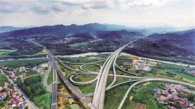 1 继9月10日宁宣杭高速公路江苏段(高淳至宣城)正式通车后,宁宣杭浙江段建设取得重大进展。(无人机拍摄) 交控宣