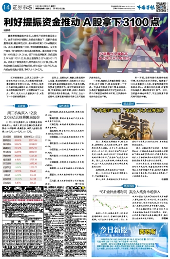 利好提振资金推动 A股拿下3100点