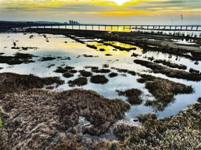 初冬时节,河南黄河湿地国家级自然保护区济源段五彩斑斓,美如画卷。图为11月14日拍摄的河南黄河湿地国家级自然保护区济源段景色(无人机照片)。 新华社发 苗秋闹/摄