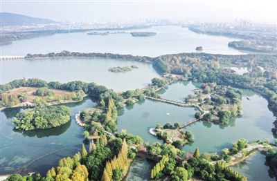 江苏省常熟市是首批国际湿地城市之一,近年来始终坚持“全面保护、科学修复、合理利用、持续发展”的原则,不断深化生态保护与修复。目前,常熟市湿地总面积达29921.61公顷,其中自然湿地面积18553.05公顷。图为尚湖国家城市湿地公园景色(无人机照片)。 新华社记者 杨磊/摄
