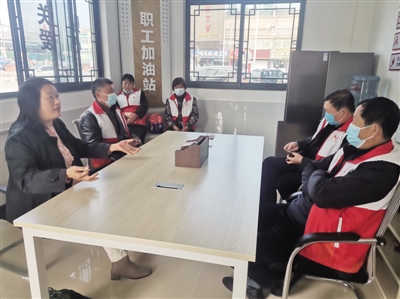 红色小管家黄业勤热情地给第一个走进幸福驿站的保洁员张大爷介绍幸福驿站的功能和设施,听完介绍,张大爷激动地说:“这个地方真好,布置得像家一样,有热水还可以热饭,冬天我们终于可以吃上热饭了。”