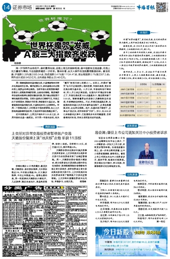 “世界杯魔咒”发威 A股三大指数齐收跌