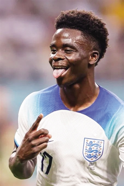世界杯小组赛,英格兰对阵伊朗,阿森纳小将萨卡表现出色,他在上下半场各打入1球,帮助球队大比分领先。
