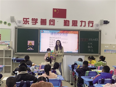 综合组美术老师吴诗语老师的课题是《漂亮的建筑》,她从著名建筑物入手,带孩子们领略中国著名建筑之美。音乐组郭艺晨老师则是由欣赏钢琴小曲《袋鼠》入手,引导孩子们感受音乐的速度、力度。通过教孩子学唱歌曲《动物说话》,引导学生进行音乐创编活动,教学内容丰富多彩。