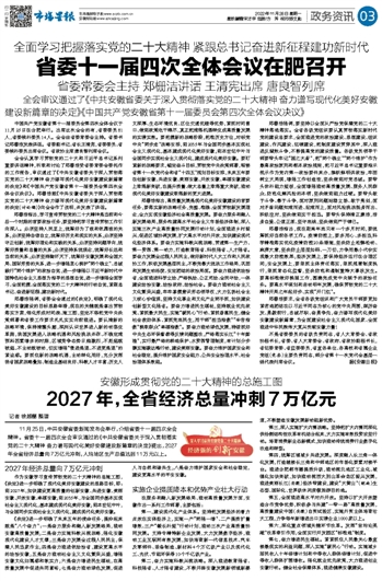 省委十一届四次全体会议在肥召开
