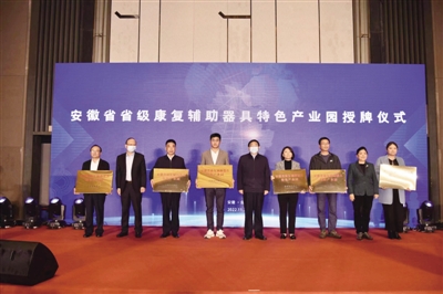 在安徽省养老产业“双招双引”推介会上,现场达成四个签约项目,6家开发园区获得省级康复辅助器具特色产业园。四个项目单位分别为:宁国市南山街道办事处和南京金邺顺科实业有限公司、郎溪县招商合作服务中心和莫顿(浙江)实业有限公司、芜湖市繁昌区人民政府和同福集团股份有限公司、马鞍山市雨山区民政局和安徽众拓养老科技产业有限公司;6家省级康复辅助器具特色产业园分别为: 合肥高新技术产业开发区、合肥经济技术开发区、芜湖鸠江经济开发区、繁昌经济开发区、潜山经济开发区、明光经济开发区。