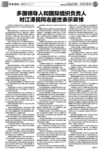 多国领导人和国际组织负责人 对江泽民同志逝世表示哀悼