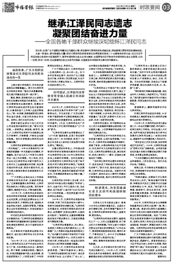 继承江泽民同志遗志 凝聚团结奋进力量