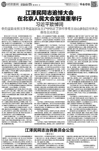 江泽民同志追悼大会 在北京人民大会堂隆重举行