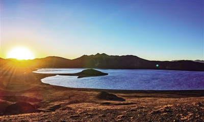 羊卓雍错简称羊湖,大部分位于西藏山南市浪卡子县境内,湖面海拔4400多米。这是夕阳下的羊卓雍错(12月11日摄)。 新华社记者 沈虹冰/摄