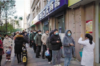 星报讯 12月21日,合肥市疫情防控应急指挥部通告,在市区内100家定点销售药店持续供应退热类药品。12月22日,记者在合肥市多家定点药店门口看到,市民们早早的排起了长队等候购药。