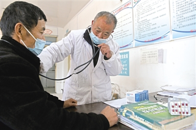 12月21日,安徽省淮南市寿县堰口镇江黄村卫生室村医陈继武为村里老年人进行健康随访义诊,就近做好农村居民健康服务。淮南市高度重视农村地区疫情防控和卫生健康服务工作,统筹整合各方面资源和力量,开展分类分层分级医疗卫生健康服务,通过家庭医生签约服务,对重点人群实现签约全覆盖,最大程度保护农村居民身体健康和生命安全。