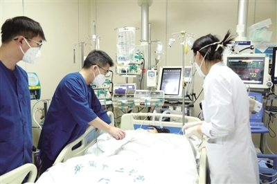 随后杨翔和付路两位医师在给患者持续电动心肺复苏的同时,迅速成功实施了ECMO联合血液净化治疗,在大家的努力下患者于凌晨2时左右恢复了部分意识。在接下来的2天里,患者又历经多次抢救。患者目前心脏功能依然极其衰弱,还远未脱离危险。