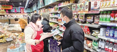 12月26日,合肥经开区临湖社区巢桥居委会工作人员向辖区餐饮企业宣发食品安全海报。
