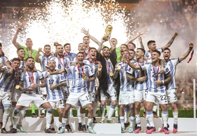 12月18日,阿根廷队在卡塔尔第22届世界杯决赛中经历一场跌宕起伏的激战,最终在点球大战中4:2(90分钟2:2,120分钟3:3)击败法国队,队史第三次捧起大力神杯。