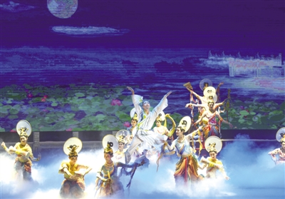 《丝路花雨》由甘肃省歌舞剧院创排,取材于敦煌壁画艺术,博采各地民间歌舞之长,展现了唐朝对外经济、文化交往频繁的盛况。 新华社记者 王菲/摄