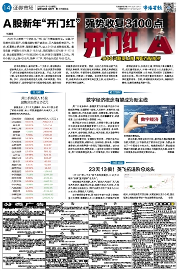 A股新年“开门红” 强势收复3100点