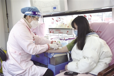 1月4日下午,在位于合肥市淮河路步行街的合肥市中心血站献血车内,市民踊跃参与无偿献血。受到近期新冠病毒感染影响,目前合肥市血液库存量较低,医院临床用血缺口较大。合肥市中心血站呼吁市民在身体条件允许的条件下积极参与无偿献血,缓解用血压力。