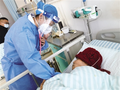 针对新冠病毒感染入院患者,医护人员每天都要严密观察患者病情尤其氧合变化,根据病程早晚、病情严重度分层及脏器功能制定个体化治疗方案。“最近医院收治的阳性患者中,80岁甚至90岁以上高龄老人明显增多,这些老人大多合并有高血压、冠心病、糖尿病、慢性肺病等基础病。”呼吸与危重症医学科副主任医师刘丽光介绍,老年人感染新冠后常出现持续发热、咳嗽,活动后气短、乏力、纳差等。与中青年感染者相比,高龄患者由于合并多种高危因素,更容易演变成新冠病毒感染重型或危重型。