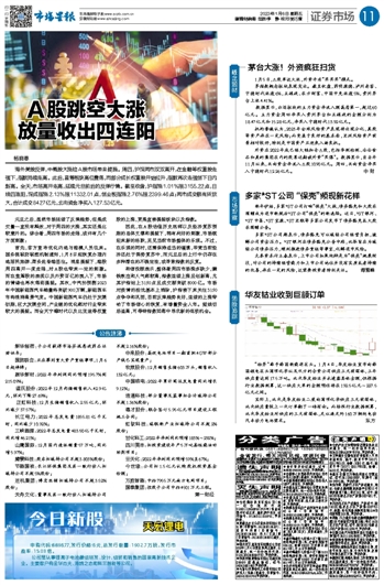 A股跳空大涨 放量收出四连阳