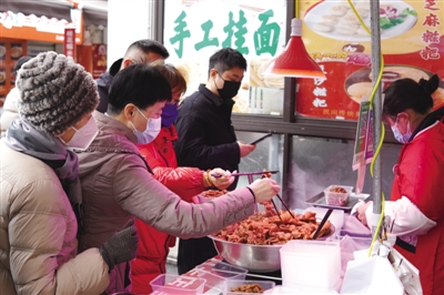 趁着天气晴好,许多市民近日外出逛街采办年货,詹记、刘鸿盛、陶永祥等传统老字号人气回暖、购销两旺。