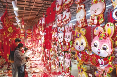 “我们家在这条街开了20多年,品质绝对有保证。”定远土猪肉店主郭少敏手起刀落,熟练地将顾客购买的大骨剁成小块。小店中,新鲜猪肉、香肠、腊味、干渣肉、鲜肉应有尽有。为了备战兔年春节,他准备了十几万斤的年货,“卖完是没有问题的,年前客流量增多,营业额大概是平时的三四倍。”