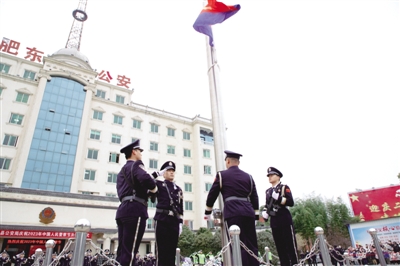 2023年1月10日是第三个“中国人民警察节”。1月10日上午,肥东县公安局举行“升警旗、唱警歌、宣誓词”仪式。县局党委班子成员,民警、辅警代表共70余人参加仪式,民警辅警亲属、群众代表近100人现场观礼。