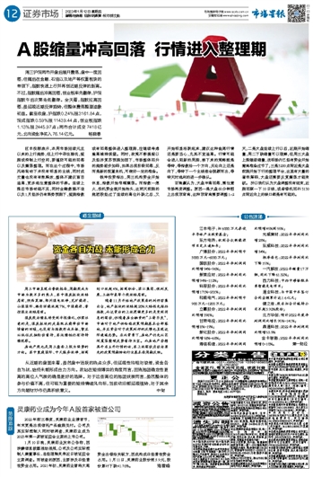 A股缩量冲高回落 行情进入整理期