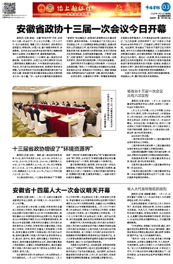 安徽省政协十三届一次会议今日开幕