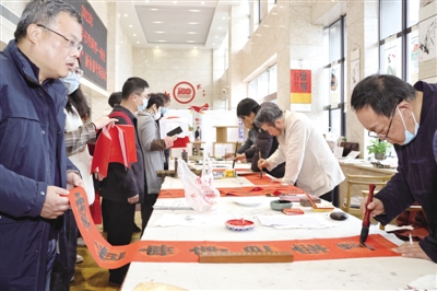 活动当天上午,图书展台早早摆了出来,儿童绘本、诗词著作、传统文化、民俗文化等多种多样的惠民展销图书,吸引职工参观和购买。下午,活动邀请书法家现场书写春联,免费向职工群众赠送春联。在现场,书法家们挥毫泼墨,将新年祝福融入笔端,一横一竖尽是美好期盼,一撇一捺饱含深情寄望。