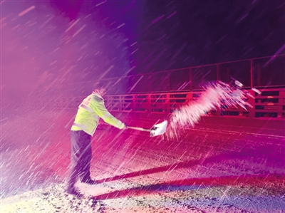 “小庙镇312国道是进出合肥的主要通道,要第一时间确保春运出行安全。”15日凌晨,交警蜀山大队下达工作指令,负责小庙镇区域的小庙中队交警立即组织警力,将准备好的融雪剂和铁锹等迅速装车,赶赴易结冰路段开展除雪撒盐作业。不仅是在312国道,随着低温冰雪天气的到来,交警蜀山大队出动260余名警力,在黄山路、合作化路、西一环、望江路等路段全面加强交通应急保障工作。