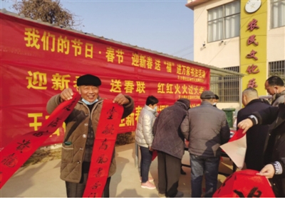 春节将至,为进一步弘扬中华民族传统文化、丰富村民群众的精神文化生活,日前,砀山县砀城镇组织书法家来到王古楼村,深入开展“我们的节日·春节”主题宣传活动,把春联和“福”字送进千家万户,让群众温暖过冬过节,切实提升群众满意度和获得感。