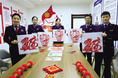 为进一步营造风清气正的节日氛围,在新春佳节来临之际,明光市税务局以“书清廉·剪廉花·绘廉画”为主题开展新春送“廉礼”活动,让“年味”更有“廉味”。图为税务干部在明光市非遗剪纸传承人的指导下完成廉洁文化剪纸作品“稅稅清廉”。