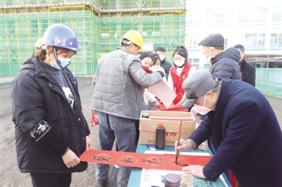 日前,合肥市蜀山区西园街道安居苑小学扩建项目工地热闹非凡,年味十足。西园街道社区服务中心、安居苑社区党委联合辖区“红烛”志愿服务队来到项目建设工地,开展写春联、听宣讲、吃饺子活动,为一线项目建设者们送来温暖和关怀。