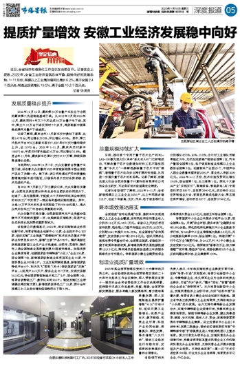 提质扩量增效 安徽工业经济发展稳中向好